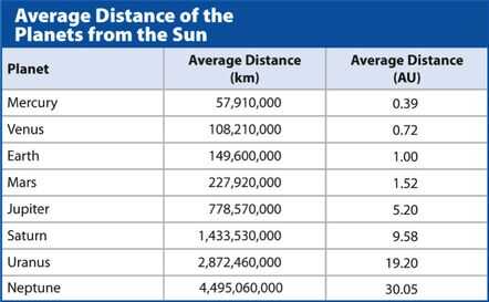 Paso 2: Encontrar distancias de los planetas desde el sol