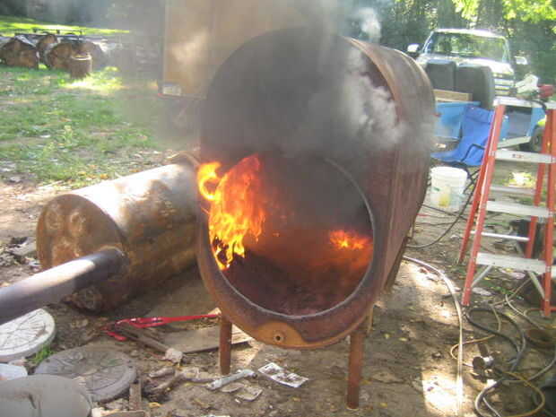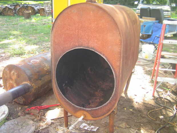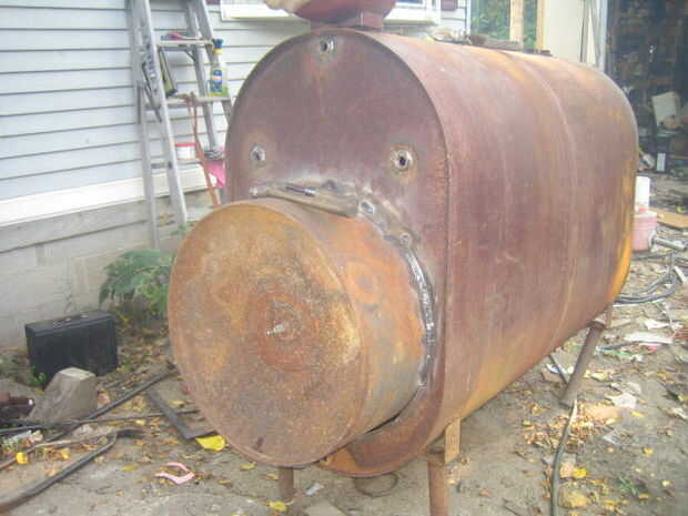 Al soldar con autógena en todas las conexiones, y cuando se realizan diapositivas en la cámara de combustión. dejar unos 8" que se pega en la parte delantera del tanque de aceite. Dejar el extremo en la cámara de combustión hasta que firmemente soldada con autógena en el lugar en el tanque. Otro sabio que le haz tirado fuera de redondo.