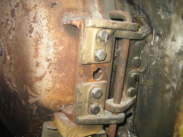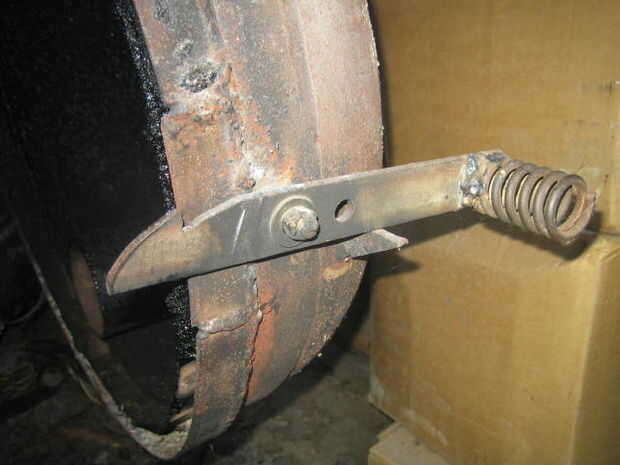 También necesitamos un cierre. en el otro lado de la puerta, soldado un perno sobre el que girará el pestillo. luego se pone un trozo de correa con una muesca en. un poco corto de ángulo de hierro se suelda con autógena en la cámara de combustión para coger el picaporte.