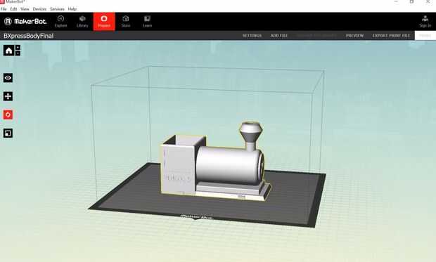 - El cuerpo principal del tren, las ruedas y la tapa de sello de exportación todos como archivos separados de AWL ya que se todo va a imprimir por separado