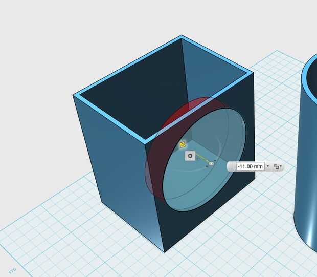 1. Dibujar un círculo en la parte delantera de la ahora ahuecado de cubo