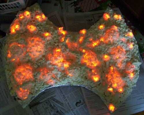 Después de que se seque puede conectar las luces y ver cómo se ve. Debe tener una lava mirar a él. Después seca también he añadido alguna pintura. Usé algunos pintura arte y ligeramente y al azar había añadido naranja, amarillo y pequeños chorros de color negro. No tengo una foto de ese paso, pero hace una gran diferencia de la apariencia final y los colores que brilla intensamente.