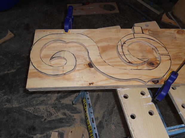 1. dibuje el diseño en un único espesor de madera de desecho. Jugar con él hasta que estés cómodo y asegúrese de tener bien redondeados de la plantilla VI para impedir el enlace.