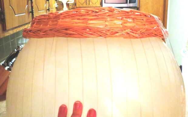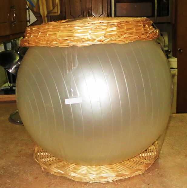 Esto se hace simplemente con cinta adhesiva las cestas en la parte superior e inferior de la bola. Que quieras ser más plana posible. Dos piezas largas de embalaje de la cinta en una "x" cada lado debe mantener en su lugar.