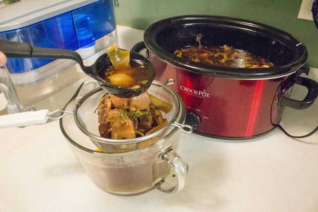 Cuando el caldo ha cocinado a la hora deseada, apagar la olla.