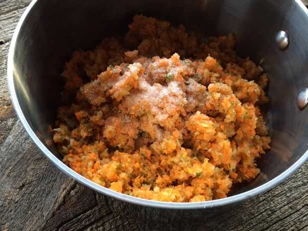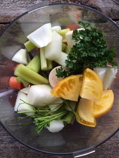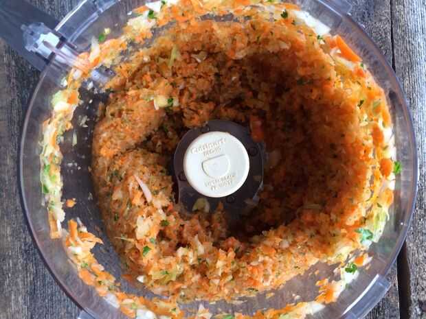 Aproximadamente trocear las verduras y luego usar un procesador de alimentos o licuadora para picar las verduras. No dude en picarlos a mano si eres ambicioso, sólo asegúrese de que son confeti-esque.