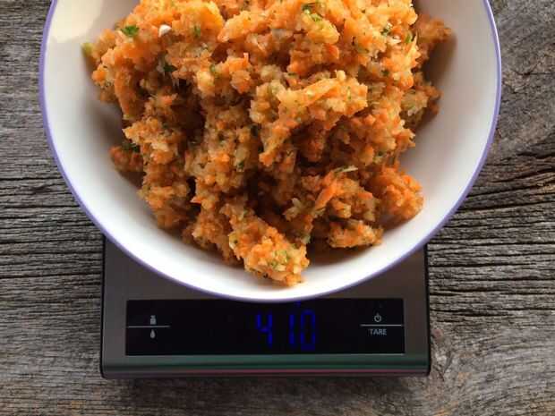 Añadir sal en la cantidad de 5% el peso de los vegetales. Por ejemplo, el peso de mis Hortalizas fue 410 gramos, así que añadido 20,5 gramos de sal marina. (* Editar: puede utilizar tan poco como 2% sal por peso si desea menos salada.)