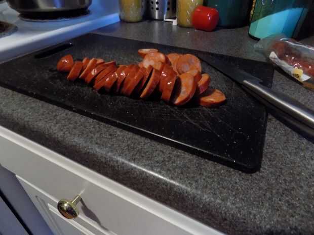 esta sopa es ideal para las frías noches de invierno. La base es real vegetales, picados y cocinado, y cuenta con fríjol great northern y polska kielbasa. Es perfecto con un sándwich de queso a la plancha. Fui con una carne relativamente poco salu