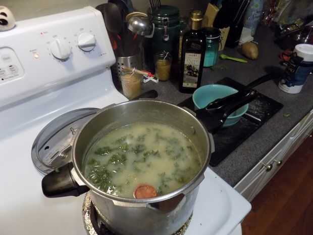 esta sopa es ideal para las frías noches de invierno. La base es real vegetales, picados y cocinado, y cuenta con fríjol great northern y polska kielbasa. Es perfecto con un sándwich de queso a la plancha. Fui con una carne relativamente poco salu