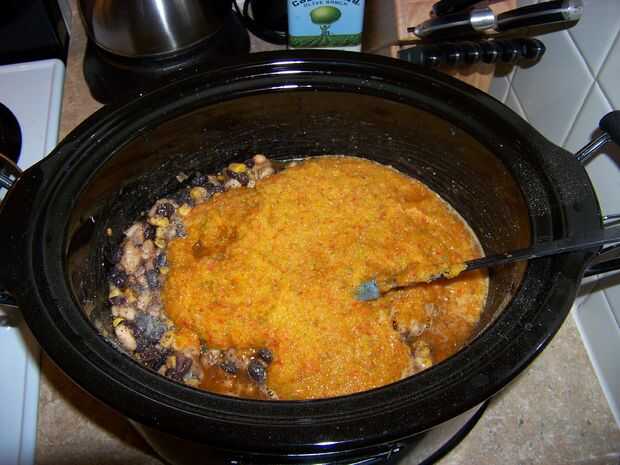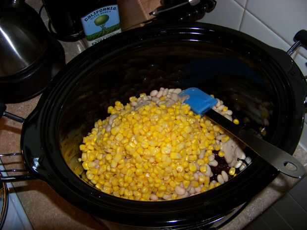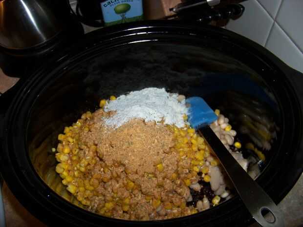Añadir todos los elementos de la latas en la olla. Mezclar bien 1 paquete de la mezcla de aderezo ranch y el taco de pollo sazonador. Finalmente dados los pimientos y la cebolla y revuelva los. Un procesador de alimentos es fantástico para esto. una pizca de trozos del pavo molido y colocar en como usted remover para que no terminen con una grande bola-o-Turquía en el final. Trocear las pechugas de pollo a cerca de 1 pulgada y añadirlos. dejar la olla en baja durante la noche o 6-8 horas. Cubo de queso en cubos pequeños y los de revolver hasta que se derritieron totalmente y ya no puede distinguir las zonas cheesed de las áreas no-cheesed. Esto es fundamental. Si no pueden acabar con un montón de trozos de esponjosos y chili que huele a queso quemado.