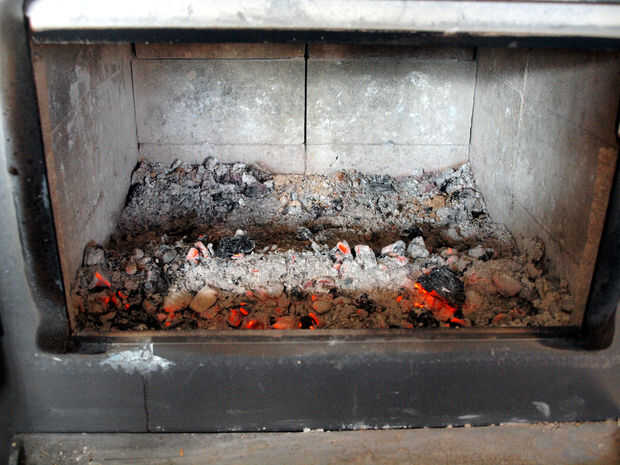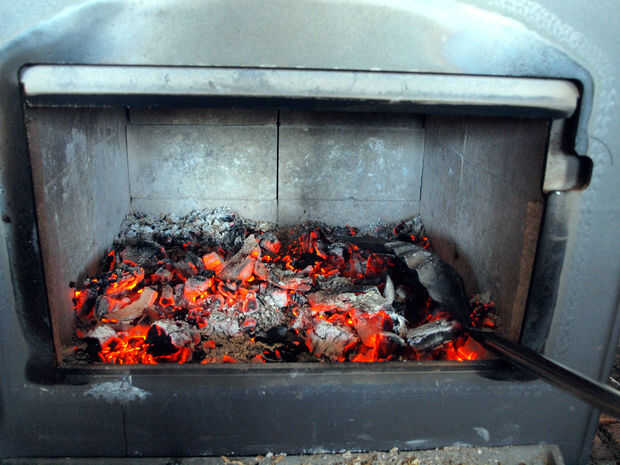 Así que la primera cosa a hacer es volver a subir el aire y remover las brasas para sacarlos para quemar lo que queda. Esto puede tomar algún tiempo. Producen calor al hacer esto, pero no tanto como una llena de fuego.