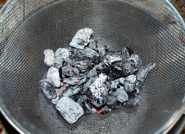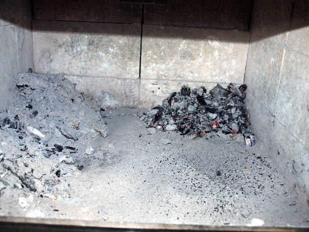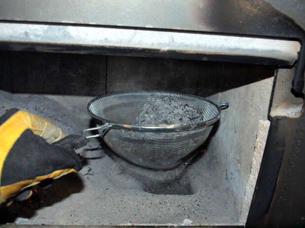 En primer lugar, no me gusta la idea de un dumping todavía carbones en un recipiente en la estufa. Además de posiblemente ser inseguro también desperdicia una gran cantidad de combustible. Trabajaste duro para obtener los carbones, asegúrese de que usted quema todo.