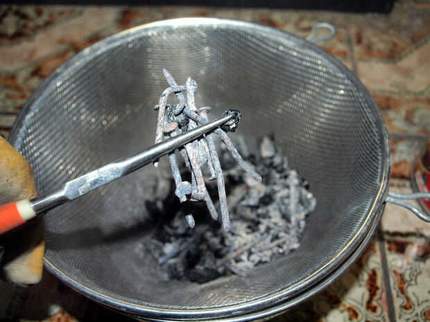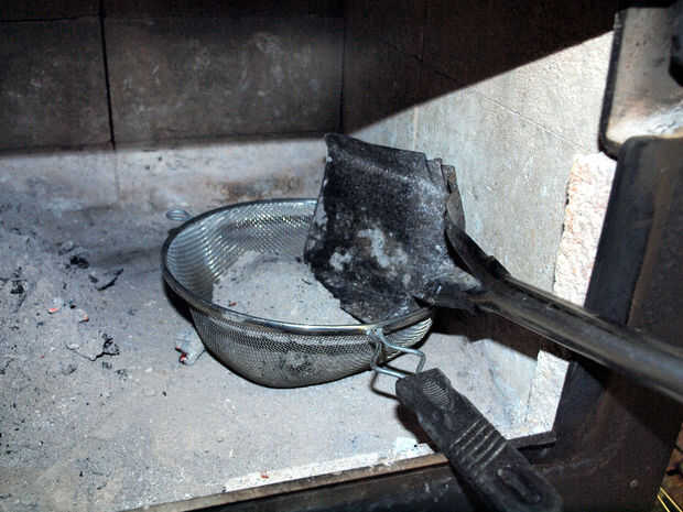 Utilice un intestino de metal para recoger la ceniza que cae a través de cuando escojan las uñas.