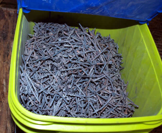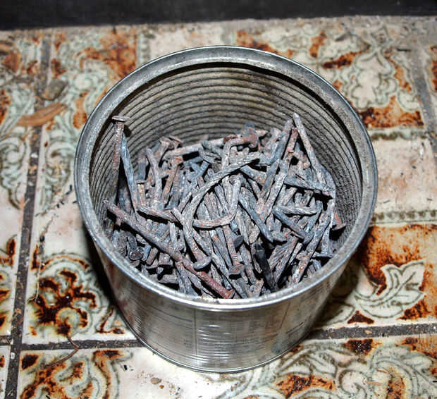 Cuando usted toma hacia fuera los clavos en un metal pueden, pueden todavía ser muy calientes.