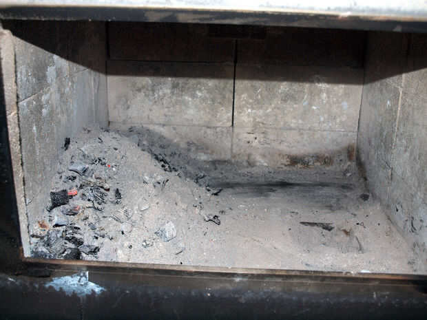 Mi estufa tiene un compartimiento de la ceniza y una puerta en la parte inferior. Así que empiezo por el dumping abajo en el recipiente.