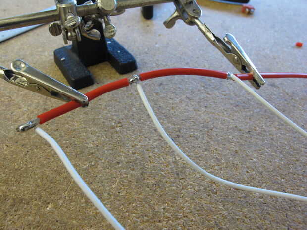 Cuando se encuentra un buen compromiso, es tiempo de soldar todo junto. Recuerde que debe mantener suficiente cable para completar el circuito.