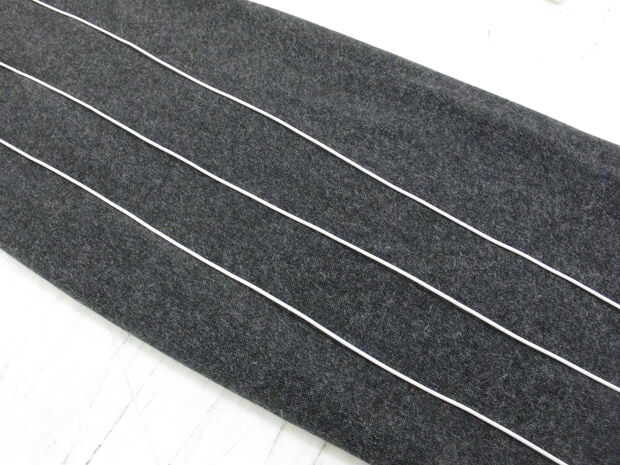 La bufanda de la foto utiliza casi 1m de tela gris y un medio metro de tela roja. Es mejor que no tener un poco menos, importa que la tela que utilizas un poco extra.