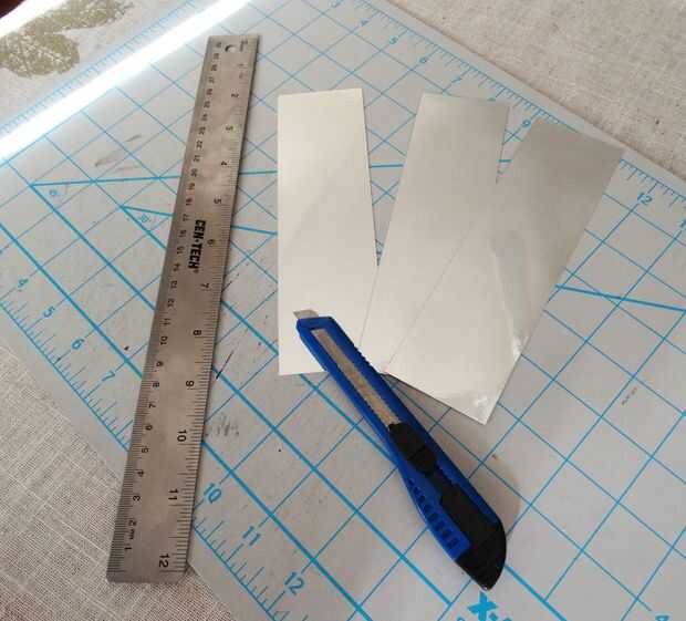 Originalmente quería utilizar vidrio espejo real, pero resulta difícil adquirir paneles largas del rectángulo. Más depósitos de arte ofrecen 1x1inch azulejos y discos redondos. En cava a través de mis fuentes de papel craft, descubrí un alijo de cartulina de papel de aluminio espejo y decidió utilice en su lugar.
