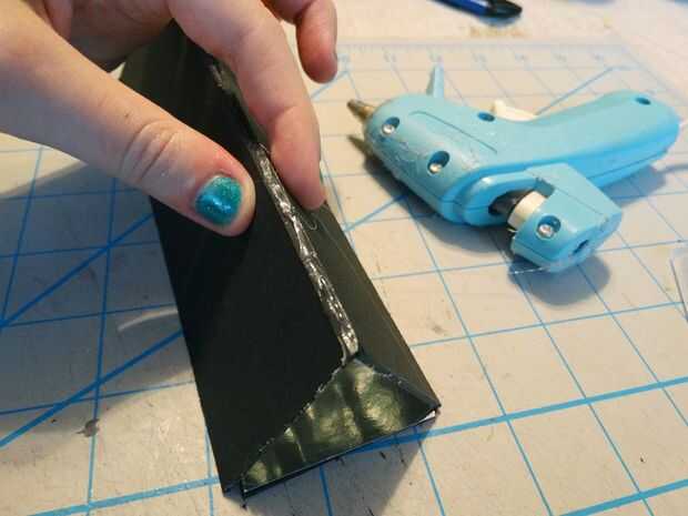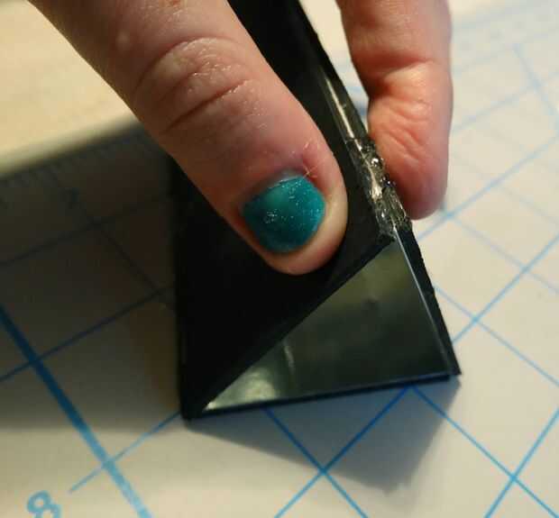 Mantiene constante los lados del triángulo, aplique una pulgada o tan de pegamento caliente a la junta superior. Junte los lados suavemente hasta que se seque.