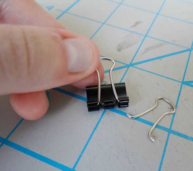 Retire las piezas de dos hilos de su clip binder. Para ello, simplemente tire lateralmente a cada lado y facilitar las lengüetas de la abrazadera negra.
