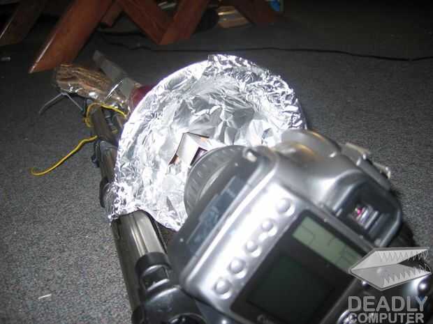 Cortar una parte del cono hacia fuera de modo que quede alineada con la lente de la cámara. Esto es diferente con la configuración de trípode de cámara.
