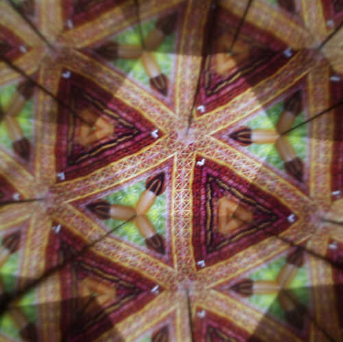 Observe que el patrón del tiro usando la pantalla del ordenador es geométricamente más preciso. Usted necesita tener la imagen de destino justo al final del caleidoscopio que ese tipo de precisión. Si la imagen de destino está lejos del final del caleidoscopio, la foto será más irregular, aunque todavía mostrará tallado de la imagen.