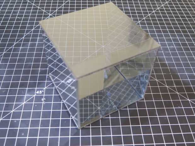 Para el panel final de sexta, es bueno si puede abrir y cerrar para que puede poner y sacar luces. Hay muchas soluciones a este, pero la cinta no es uno de ellos (tiras el espejo, ver última foto). Decidí pegar un conjunto de ocho imanes de neodimio muy pequeños, 4 en uno del grupo sexto y los otros 4 en la parte superior de la caja. Si usted hace esto, asegúrese de que los imanes se orientan por lo que atraen por lo que la caja puede permanecer cerrada.