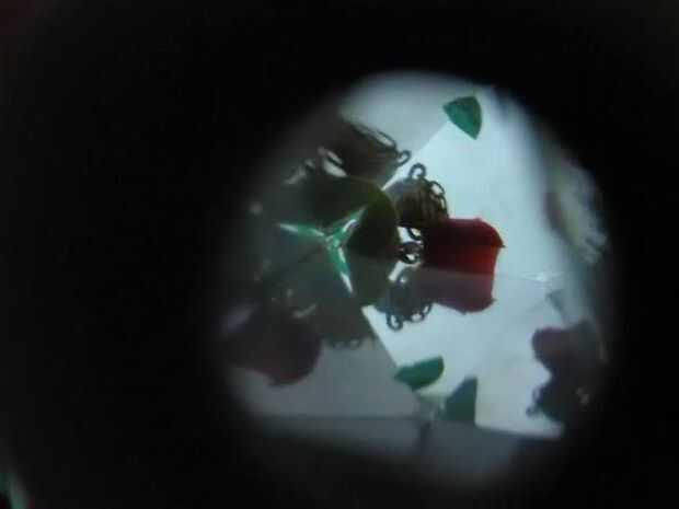 huevo de avestruz esta fue cortada para sostener un caleidoscopio. El exterior fue moldeado con canutillos. Es hermoso mirar dentro!