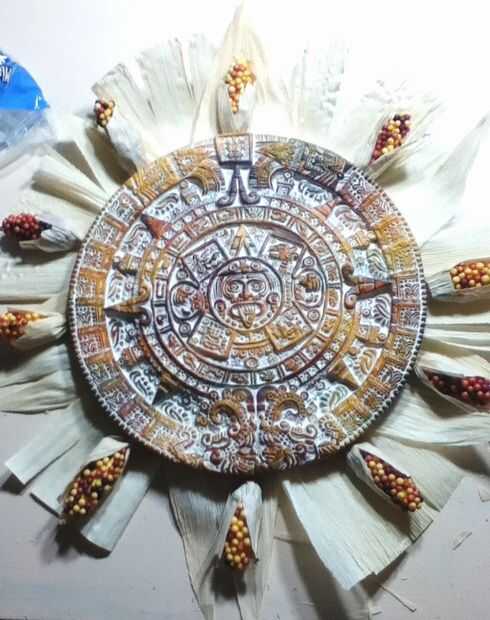 Primero simplifiqué el patrón; la versión más compleja puede encontrarse con una rápida búsqueda en Google "Calendario Azteca" o "calendario Maya". Decidí 16" todo fue bien, y encontré un trozo aleatorio de masonite para cortar co