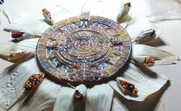 Primero simplifiqué el patrón; la versión más compleja puede encontrarse con una rápida búsqueda en Google "Calendario Azteca" o "calendario Maya". Decidí 16" todo fue bien, y encontré un trozo aleatorio de masonite para cortar co