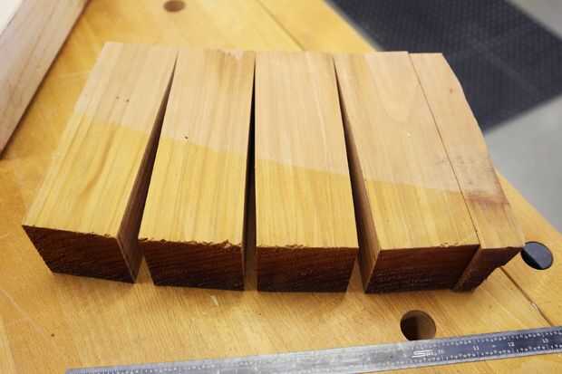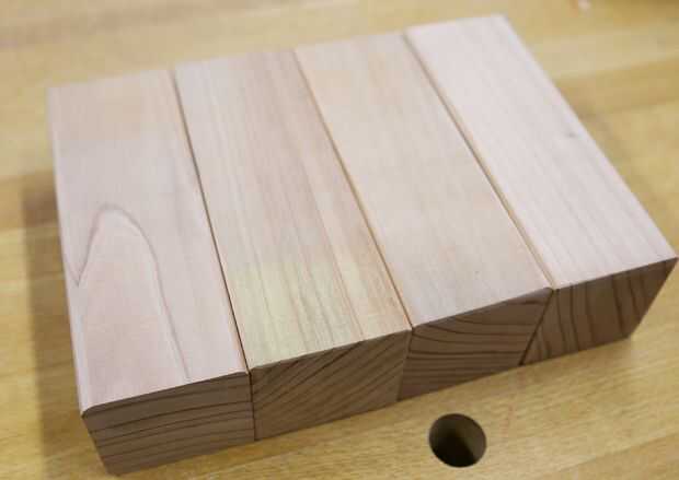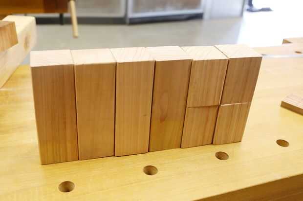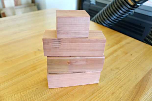 Para las "fechas" deberá medir de 4 piezas de 2.5 x 3.5 x 3.5. Al estar de pie, estos serán la mitad de la longitud de los bloques de "mes". A continuación, tendrá que cortar y lijar todos los bordes para un acabado liso