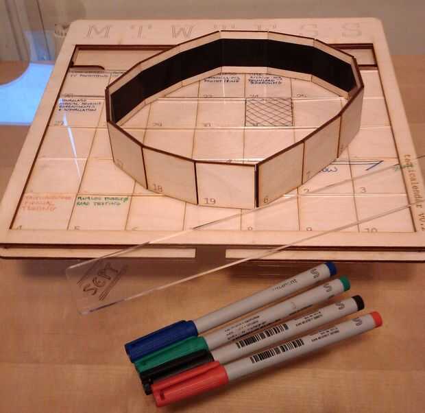 De construcción de prototipo perpetuo calendarios para regalos familiares y amigos he aprendido algunas cosas que hacer y cosas a evitar al fabricar este diseño en particular. Para este instructable escribí algunas instrucciones y publicado nuestros archivos cortador del laser bajo una licencia creative commons. Para la ejecución de la prueba, Clare tenía un ir en siguiendo los pasos mientras que tomé las fotos que ves aquí.