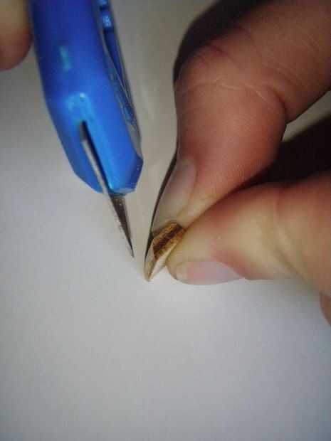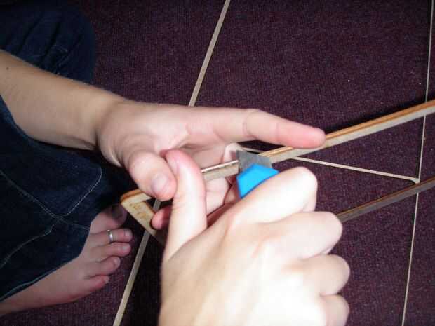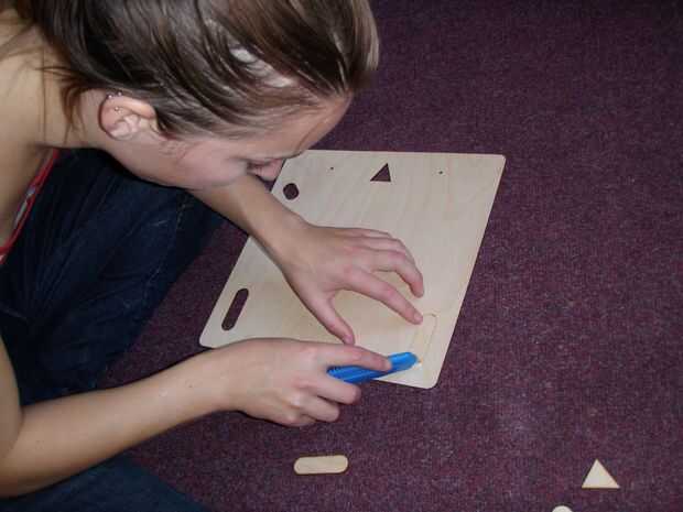 Cuidadosamente traza las líneas sin cortar con poco profundos trazos de su cuchillo, aplicando una presión creciente para completar el corte. Esto debe separar todas las piezas de uno limpio. Pequeños trozos de las vetas de la madera a veces desprenderse de una parte y permanecen Unidos a otro, pero estos pueden ser redujo de con el cuchillo.