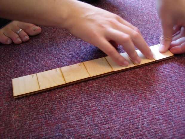 La primera línea, por ejemplo, contiene nueve azulejos en blanco y la secuencia de números 1,2,3,4,5. La segunda línea tiene dos fichas en blanco, seguidos por la secuencia del número 1,2,3,4,5,6,7,8,9,10,11,12.