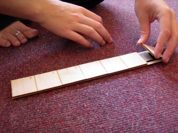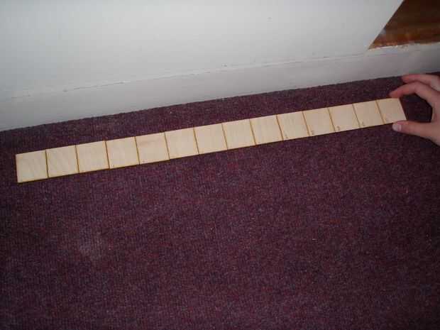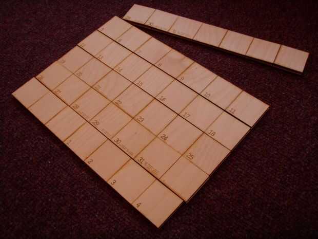 Hay dos de cada número, pero no les revoltijo todo si puede evitarlo. Es bueno mantener los números vecinos del láser corte como vecinos en los lazos de la semana siempre que sea posible, porque entonces el grano de madera coincide muy bien, un detalle de diseño que es realmente visible.