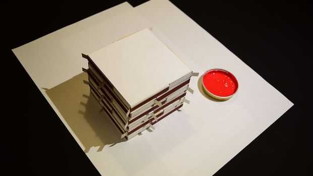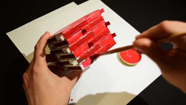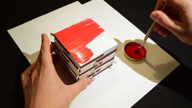 Vamos a empezar a decorar la caja. En primer lugar pinté el agujero de caja incluye las asas y los cajones con pintura de témpera roja. Luego lo dejo secar completamente antes del siguiente paso.