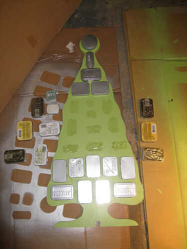 Averiguar que lata va donde haciendo referencia a su patrón y luego coloque las latas en el árbol con epoxi de dos partes. Calcomanías de número se aplica a las latas agregar dulces u otras sorpresas y luego contar los días hasta que llegue la Santa!