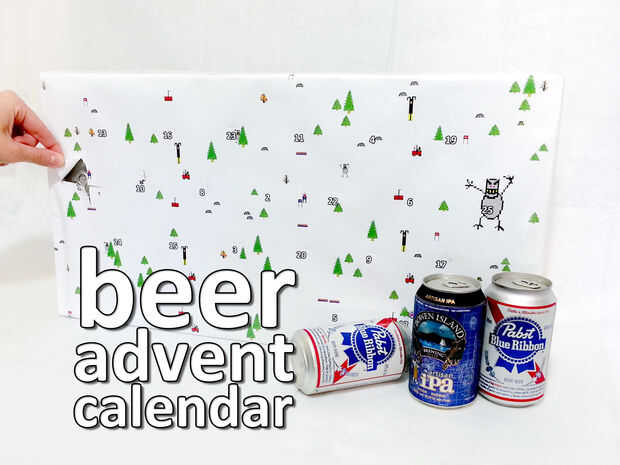 Este calendario de Adviento de cerveza está hecho de tubos de envío de cartón y una impresión de Junta de cartel y una idea de regalo asesino de tu amigo amante de la cerveza. Se trata de una divertida vuelta de tuerca en los calendarios de Adviento de chocolate aburrida tenía que crecer que nunca fueron muy satisfactorios - para comer o para abrir. Como adulto, mis gustos son más refinados. Todavía me gusta el chocolate, pero tengo una nuevo amante, y su nombre es cerveza.