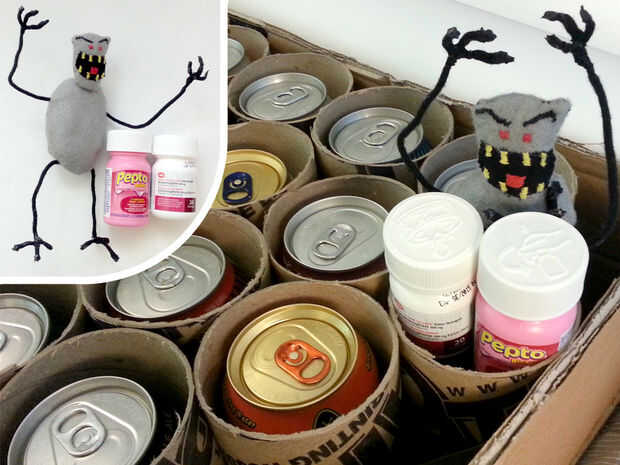 Puesto que el diseño de mi llegada estaba libre de esquí pensé que sería lógico en el 25 día que saldria el Yeti gratis de esquí y ataque. Después de 24 cervezas y ser atacada por un Yeti puede que se sienta a un poco áspero, por lo que incluí algunos Pepto Bismol y acetaminofén (paracetamol).