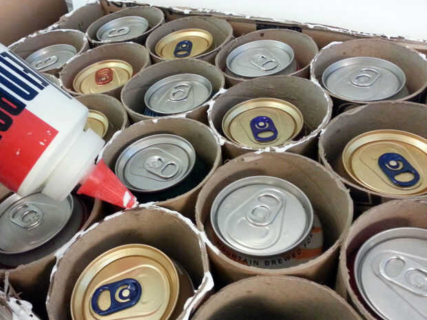 Usé cola blanca en la parte superior de los tubos de cartón. Cubre tapas de tantos como sea posible con una pequeña cantidad de pegamento. Si una pequeña cantidad de pegamento cae dentro de los tubos no es gran cosa. A continuación, ejecutar una capa gruesa de pegamento a lo largo del marco exterior.