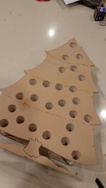 Gire el montaje de orificio en otra pieza de MDF de 5mm y dibujar una forma de"árbol" alrededor de su estructura. Esto es libre de dibujo y depende de usted cómo hacerlo. No tiene aún un árbol!