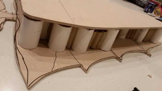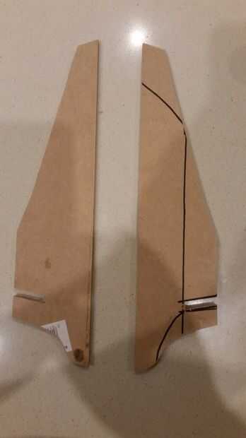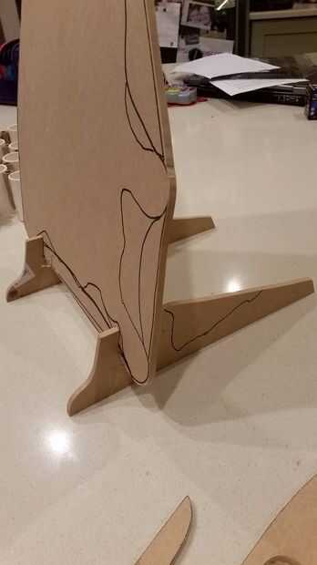Marca una forma de la pierna en un cut off de MDF más o menos la forma como en la foto de arriba. (No medir estas cosas. Sólo dibujarlos y recorto. Mina son cerca de 250 mm de largo).