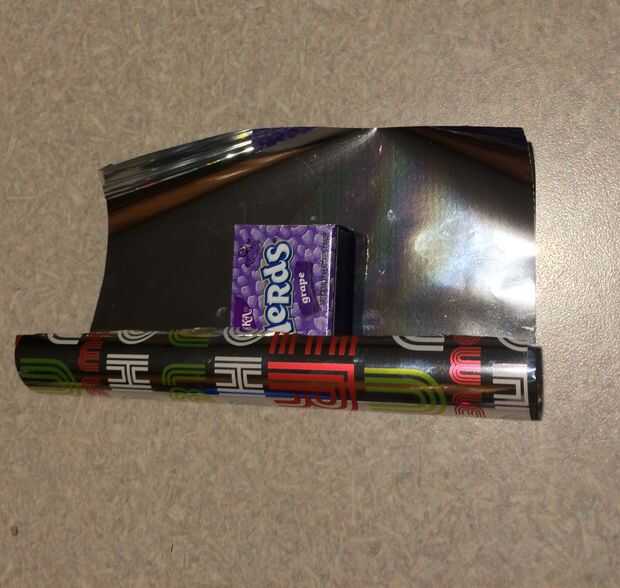 Caramelos o juguetes a la parte posterior de la caja de la cinta y cierre la puerta. (usted puede también escribir un mensajito en el interior de la puerta si quieres)