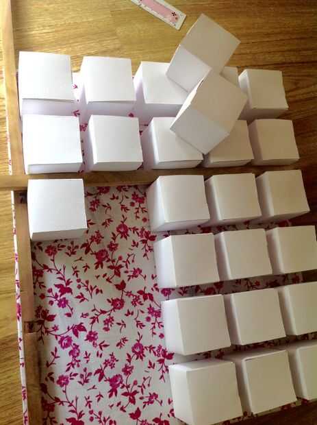 Asegúrese de que el cuadro se abre en el mismo lado cuando pegado. Usé 1/2" tacos como guías. Después escriba los números 1-30 en las cajas. ¿31? bien... puede ir ese día a wilde:-D!