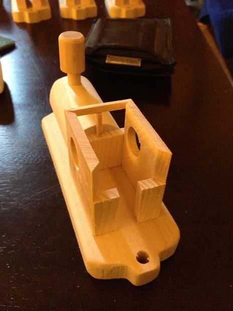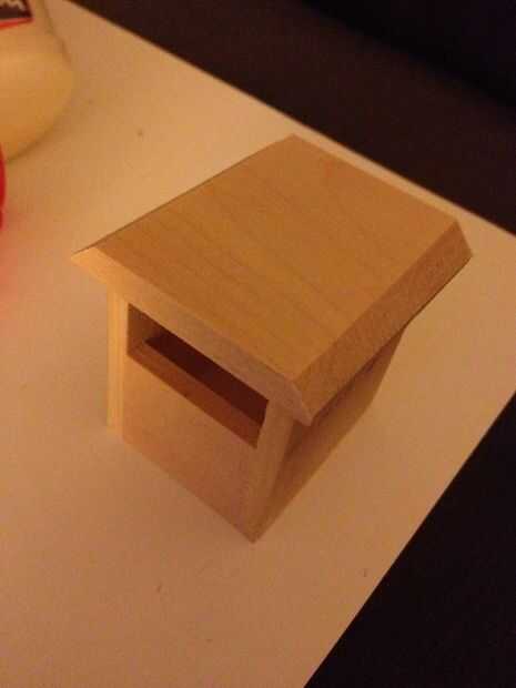 El cuadro aquí show Mach 1 de la casa del motor. Tomé este aparte y poner una inclinación de 45 grados en cada pieza para que ocultan los extremos de la madera. Puedes ver en la imagen. Utilizar un taladro de 3/4" para poner una ventana en cada pared lateral de la casa del motor y todas las paredes pegadas. Hay ninguna imagen para este, pero luego de cortar la pieza trasera de madera que parece que hay una puerta trasera. Por último tomé algunos corte de madera delgado de mi sierra de mesa y pegar un marco de ventana en el frente de la casa del motor.