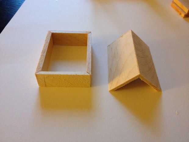 Para el cuerpo del compartimiento, tomé piensa en listones de madera, aproximadamente 1/2" y corte en ángulos de 45 grados en los extremos. Les pegué juntos en forma de rectángulo. Luego cortar las dos piezas de base y poner un ángulo de 45 del Decreto en la parte superior e inferior para que se sentaron uniformemente sobre el marco.