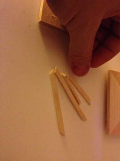 Luego marqué la parte inferior de la pieza del techo terminado donde sería el labio. Pegan pequeñas tiras de madera delgada alrededor de la marca para mantener la pieza de la azotea en lugar cuando en el cuerpo.