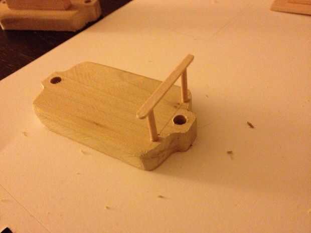 Al final del coche dos pequeños agujeros perforados en cada lado y luego insertar las secciones de 1/8". Luego cortar pequeñas secciones de los pasamanos. El coche vagón termina con una barandilla que bloquea el jinete de salir de la parte posterior.