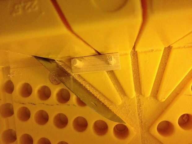 Tomé cada pieza y cortado las cuatro esquinas en un ángulo de 30 grados en la caja de ingletes.