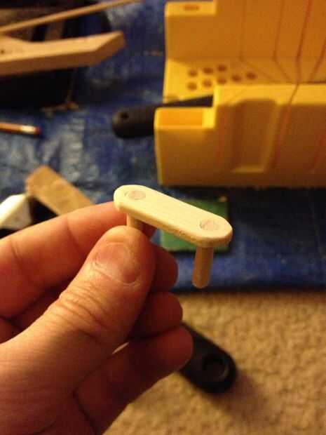 Y lija los extremos en un borde redondeado que fluye suave. Las piezas cayeron fácilmente en los orificios de 1/4" que perforado en los bloques del cuerpo.